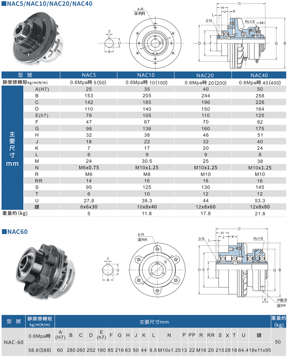 4. NAC型(標(biāo)準(zhǔn)型)空壓通軸式離合器