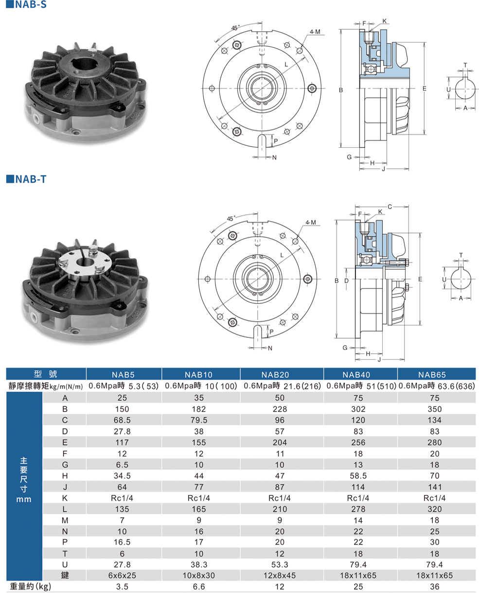 4. NAB型(標(biāo)準(zhǔn)型)空壓通軸式制動器