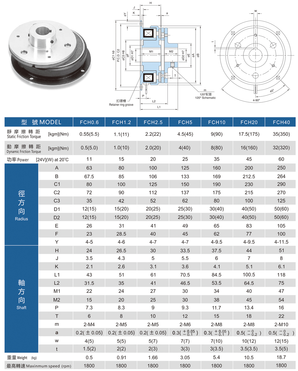 4. FCH型(干式單板)電磁式離合器(附導(dǎo)座)