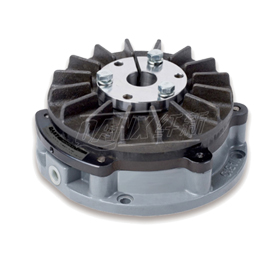 NAB型(標準型)空壓通軸式制動器,是用帶楔的圓錐形軸套管往軸上安裝,擁有摩擦板可在保持機械設備原樣的情況下進行交換的構造??堪惭b在帶輪轂的圓盤上的冷卻片來散發(fā)因摩擦而產生的熱量。